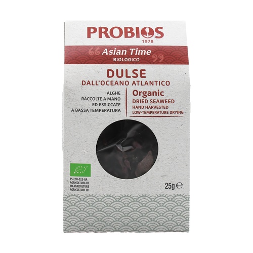 Dulse je řasa typické červené barvy, ručně sbíraná a sušená při nízké teplotě. Je chrupavčitá a má typickou chuť korýšů. Tento produkt je přirozeně bohatý na jód, doporučuje se používat v malém množství a příležitostně.