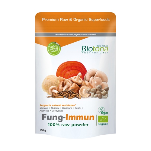 Fung Immun Bio od Biotona je vynikající směs 100% přírodních a biologických prášků z mycelií hub. Složky hub, které chrání proti vnějším vlivům a posilují odolnost