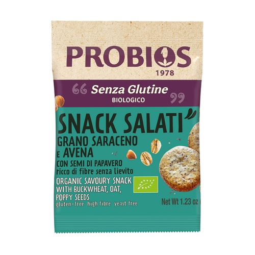 Snack z pohanky a ovsa: s makovými semínky od Probios patří do řady 5 chutných bezlepkových snacků založených na obilovinách a semínkách nebo luštěninách a semínkách.