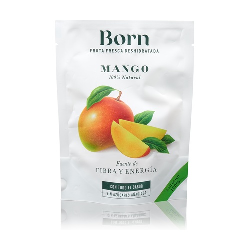 Polosušené bio mango od Born. S Born získáte všechny výhody ovoce: zdroj energie, bohaté na vlákninu a bez tuků. Jsou vybírány nejlepší mangy přirozeně zralé na stromě. Ovoce je ručně čištěno a loupáno, část vody je odstraněna pomocí exkluzivního procesu, což zajišťuje jedinečnou texturu a chuť.