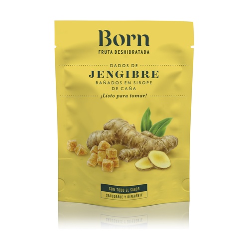 Kostky zázvoru s třtinovým sirupem z Bornu. Vybere se nejlepší zázvor s jemným stonkem, nakrájí se na kostky a usuší se po namočení v třtinovém cukrovém sirupu, čímž vzniknou kostky s sladkou chutí a jedinečnou texturou, měkké a bez vláken.
