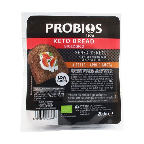 Keto chléb od Probios je první organický chléb oceňovaný těmi, kdo dodržují ketogenní dietu a přitom nechtějí rezignovat na chuť chleba. Je to chléb s nízkým obsahem sacharidů, bohatý na vlákninu a bez lepku. Chléb je předkrájený na plátky pro lepší zážitek.