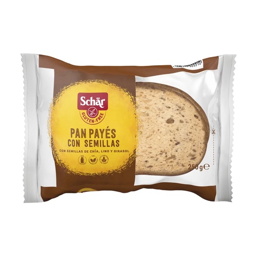Chléb Pan Payés se semínky od Schär, s vysokým obsahem vlákniny, širokou škálou semen a obilovin, ideální pro vyváženou stravu.