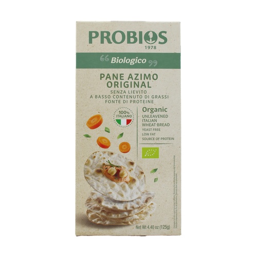 Originální pšeničný nekyprý chléb od Probios je připravován podle starodávného receptu, který předepisuje použití pouze mouky a vody. Těsto se rozválí na velmi tenké pláty a peče se na rozpáleném kameni.
