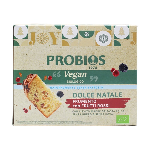 Dolce Natale Frumento Vegan Con Frutti Rossi di Probios je ekologický a veganský produkt pro vaše vánoční oslavy! S přírodním kváskem, přídavkem brusinek a bez mléka či vajec.