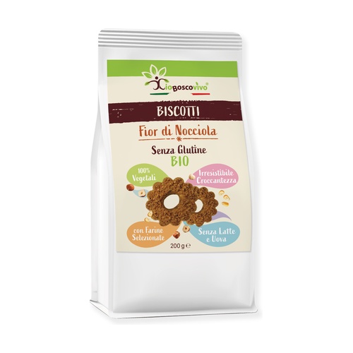 Sušenky s cizrnovou moukou a lískovými oříšky bez lepku. Produkt speciálně formulovaný pro osoby s nesnášenlivostí lepku. Ekologický.