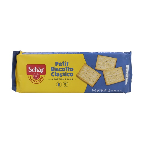 Bezlepkové sušenky Petit Biscotto Clasico od Schar jsou sušenky ve tvaru piškotů, s jemnou vůní másla, jsou baleny po porcích, takže jsou ideální jako sladká svačina při sportu, hře nebo na cesty.