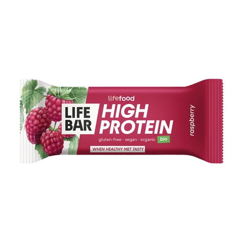 Proteinová tyčinka s příchutí bio veganských malin bez lepku.